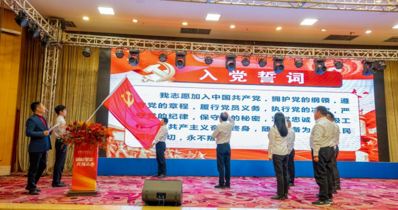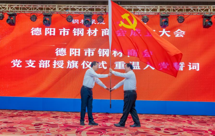 會(huì)議還舉行了莊重的授黨旗和重溫入黨誓詞儀式。德陽(yáng)市工商聯(lián)黨組成員、秘書(shū)長(zhǎng),市工商聯(lián)直屬商(協(xié))會(huì)綜合黨委副書(shū)記趙江為德陽(yáng)市鋼材商會(huì)黨支書(shū)記傅宗濤授黨旗。傅宗濤書(shū)記帶領(lǐng)黨支部成員進(jìn)行了重溫入黨誓詞。