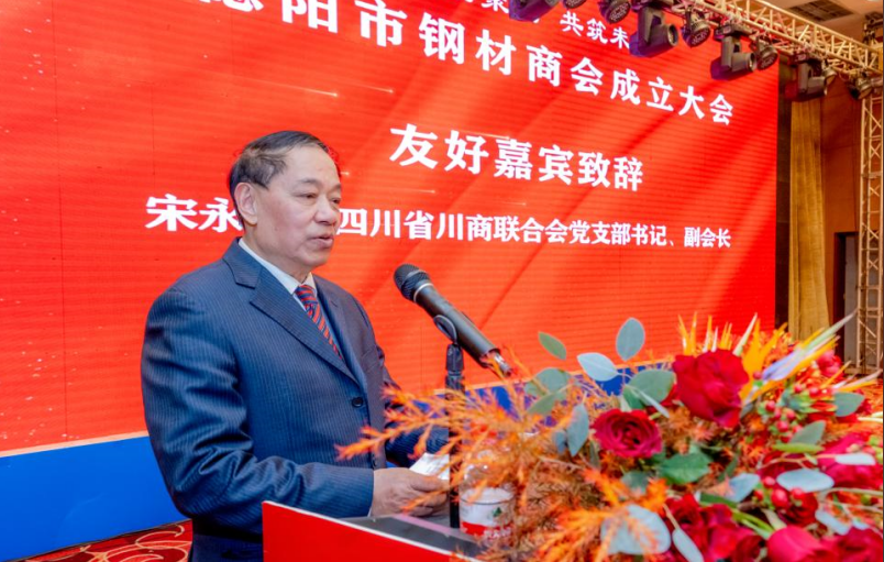 友好商會(huì)四川省川商聯(lián)合會(huì)黨支部書(shū)記、副會(huì)長(zhǎng)宋永太為大會(huì)致辭。他說(shuō),德陽(yáng)市鋼材商會(huì)的成立,順應(yīng)了時(shí)代發(fā)展的潮流和企業(yè)成長(zhǎng)的需求。它搭建起了一座溝通的橋梁,讓企業(yè)之間的交流更加緊密無(wú)間;它構(gòu)筑起了一個(gè)合作的平臺(tái),使資源得以優(yōu)化整合,讓優(yōu)勢(shì)互補(bǔ)成為可能;它營(yíng)造出了一個(gè)溫馨的家園,為我們?cè)谏毯2珦舻钠v心靈提供棲息之所,讓我們能在此相互慰藉、砥礪奮進(jìn)。而江秉貴會(huì)長(zhǎng)的當(dāng)選,更是眾望所歸。身為我們四川省川商聯(lián)合會(huì)的杰出理事,您過(guò)往展現(xiàn)出的卓越領(lǐng)導(dǎo)才能與無(wú)私奉獻(xiàn)精神有目共睹。如今您肩負(fù)新使命,定會(huì)為德陽(yáng)市鋼材商會(huì)注入新活力與智慧,引領(lǐng)其蓬勃發(fā)展,搭建起會(huì)員企業(yè)間溝通協(xié)作的橋梁,拓展廣闊商業(yè)機(jī)遇,促進(jìn)行業(yè)自律與規(guī)范建設(shè),在地方經(jīng)濟(jì)畫(huà)卷中繪出濃墨重彩。我們深信,在您的引領(lǐng)下,德陽(yáng)市鋼材商會(huì)必將蓬勃發(fā)展,不斷開(kāi)創(chuàng)輝煌的未來(lái)。
